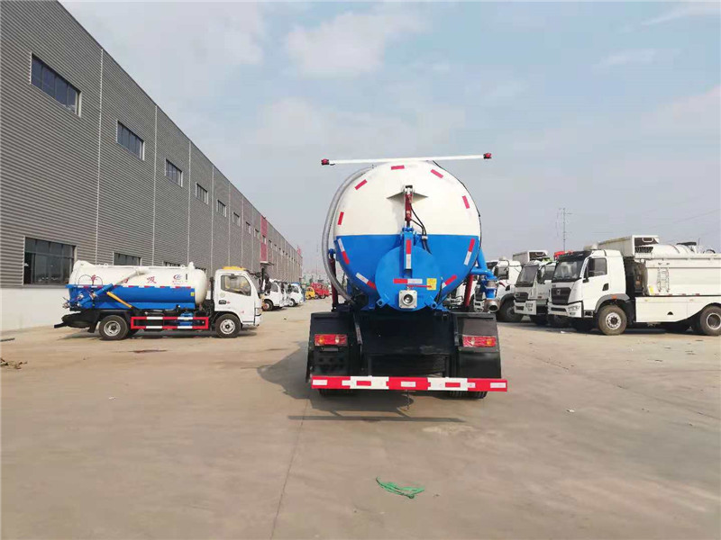 由于吸糞膠管始終浸沒于液面上,糞罐內(nèi)的空氣被抽吸后,因其得不到補充而越來越稀薄,致使罐內(nèi)壓力低于大氣壓力,糞液即在大氣壓力使用下,經(jīng)吸糞膠管進入容罐;蛘哂捎诤缥芙咏薜祝諝獗徊粩嗯湃爰S罐時,因其沒有出路而被壓縮,致使罐內(nèi)壓力高于大氣壓力,糞液即在壓縮空氣的作用下,經(jīng)虹吸管,吸糞膠管排出罐外。吸污車具有抽吸效率高、自吸、自排及直灌等特點。抽滿糞罐時間:≤5min,吸程:≥8m。據(jù)有使用壽命長,工作速度快,操作簡便,運輸方便等特點。吸污車:吸污車(Suction sewage truck)是收集、中轉清理運輸污泥、化糞池糞便、污水,避免二次污染的新型環(huán)衛(wèi)車輛,吸污車可自吸自排,工作速度快,容量大,運輸方便,適用于收集運輸糞便、泥漿、污水等液體物質。吸污車采用國內(nèi)技術的吸污車真空泵,吸力大,吸程遠,特別適合用于下水道內(nèi)的淤積物的抽吸、裝運和排卸,尤其是可以吸下水道泥漿、淤泥、石子、磚塊等較大物體,主要由取力器、傳動軸、油水分離器、專用真空吸污泵,容積壓力表、吸物導管、自流閥、真空罐體、連通器(視糞窗)、全自動防溢閥、壓力罐體、管網(wǎng)系統(tǒng)、真空壓力表、液壓自卸裝置、洗手裝置等組成