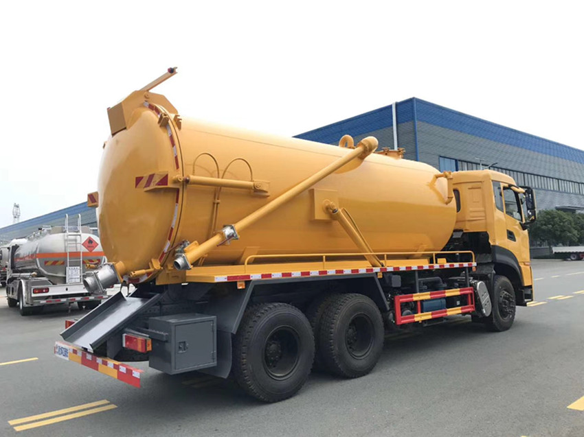 5.液壓舉升自卸功能,便于將各種污物傾倒干凈,后罐門可以液壓啟動開啟,便于清理罐體內的沉積物,凝固物及對罐體內部進行維修、保養(yǎng),液壓取力增強了系統(tǒng)的穩(wěn)定性。