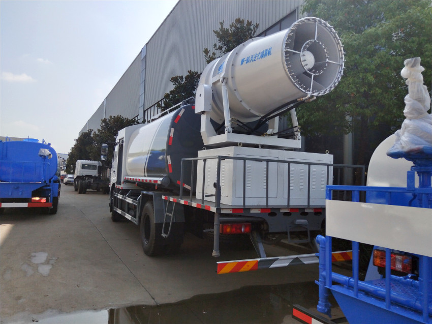 抑塵車吸程≧7米,灑水寬度≧14-16米,射程≧25-40米,引水時間<5min,流量60m3/h。前沖(噴)、后灑、帶側噴(花灑)、帶后工作平臺、平臺上安裝綠化灑水高炮(炮噴射形狀可調節(jié):直沖、大雨、中雨、毛毛雨、霧狀、可連續(xù)調節(jié),360°旋轉),配消防接口,自流閥,濾網,帶自吸自排功能。配備大功率專用灑水泵,泵可自吸自排,安裝過濾網,帶消防接口,可通過消防栓進水,帶自流閥,此車尾部加裝大功率農藥噴灑炮,噴灑狀態(tài)霧狀,有效射程15-45米,外部平臺帶獨立的機組。