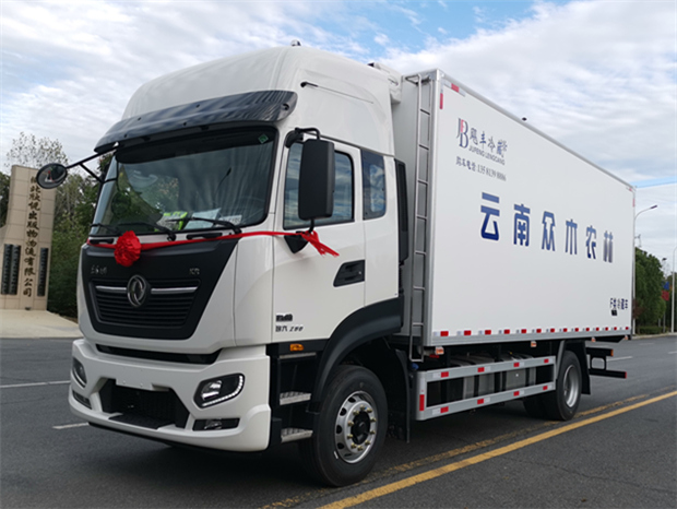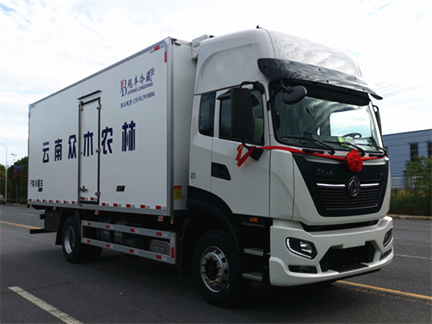 東風(fēng)天錦6米8冷藏車-國(guó)六290馬力,整車型號(hào)為:DFH5180XLCEX7,發(fā)動(dòng)機(jī)型號(hào)為:D6.7NS6B290,整車外形尺寸:9200×2600×3960mm,箱體尺寸6800×2440×2450mm,總質(zhì)量:18000Kg,整備質(zhì)量:7880Kg,額定質(zhì)量為:9990Kg.