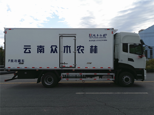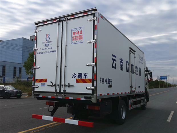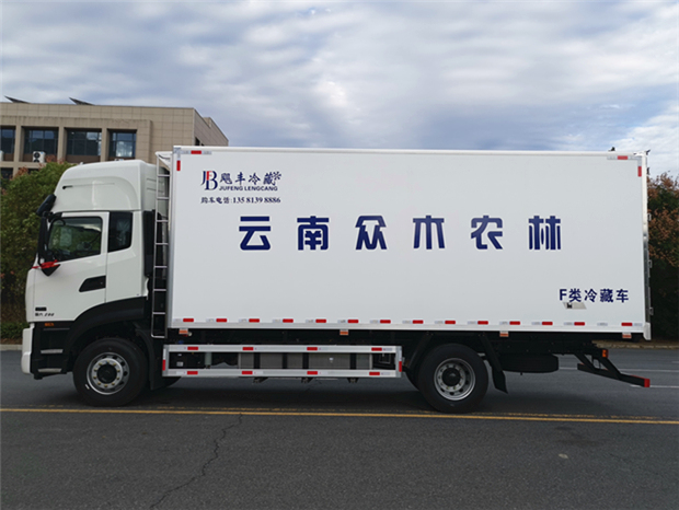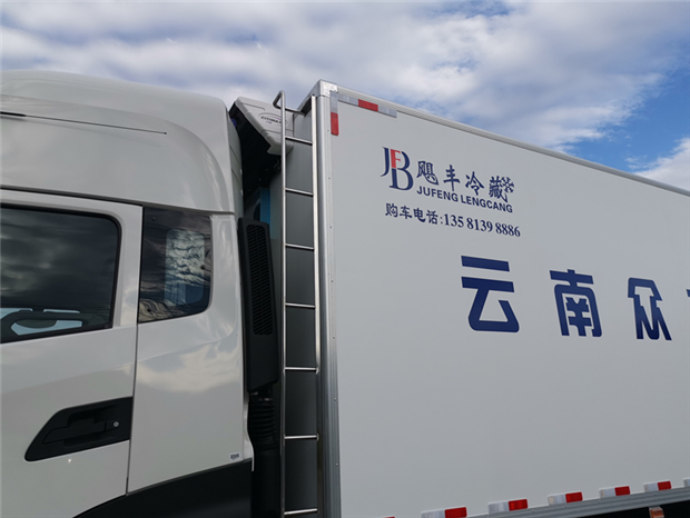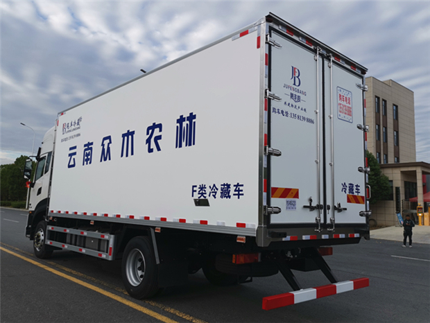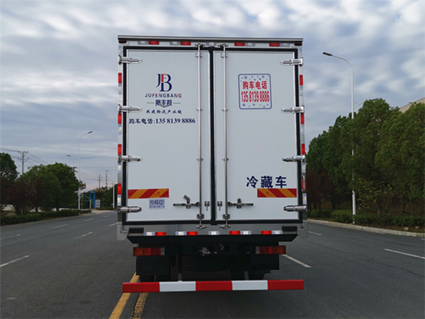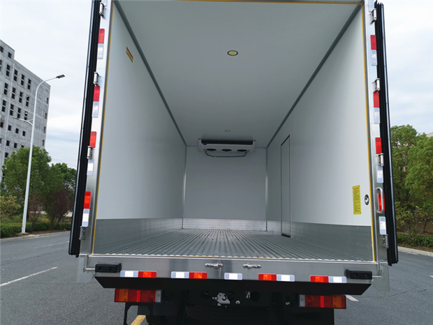 車廂配置為:《斷橋隔溫工藝、整體結(jié)構(gòu)框架》;內(nèi)外面料為3mm新款玻璃鋼;側(cè)板+頂板:全密封雙組合聚氨酯膠粘連;廂體厚度為8cm;頂板10cm厚,底板12cm厚,最新款鋁合金包邊型材;型材局部厚度為4mm(鋼制鉚釘加固);廂體內(nèi)部采用2個(gè)LED照明燈及廂體示寬燈;后門框?yàn)?mm厚不銹鋼材質(zhì);門框密封條為三元乙丙橡膠材質(zhì);加厚型不銹鋼合頁(yè)及鎖件;副梁為Q700車用大梁鋼;15mm厚大梁墊皮;加裝防撞膠塊;不銹鋼門鎖件,配后雙開(kāi)門。底板為加厚鋁合金通風(fēng)槽滿焊,帶30cm高新型圍裙,副駕駛一側(cè)居中靠前開(kāi)單側(cè)門,鋁合金側(cè)防護(hù),不銹鋼冷機(jī)維護(hù)爬梯,帶大工具箱一個(gè)。帶剎車淋水器,前后淋水分別控制。