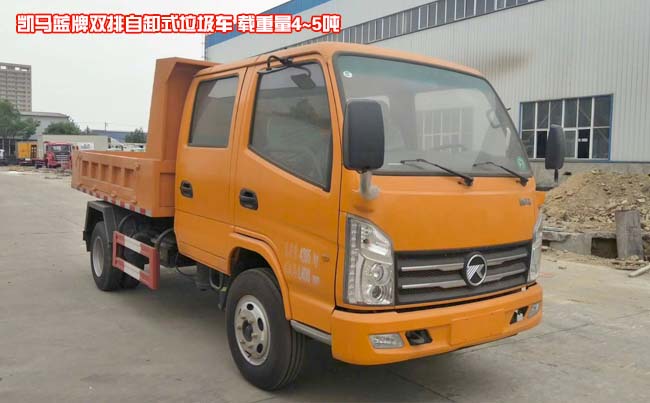 凱馬藍牌雙排自卸式垃圾車,錫柴88馬力(帶DPF),新款五十鈴級雙排車身,5檔變速箱,1063前后橋,7.00R16輪胎,汽剎,方向助力,ABS,原廠空調(diào)。